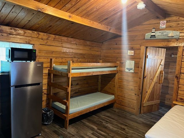 Prices are based on the first four (4) people per site and one (1) vehicle is included. Additional guests up to 6 people total per cabin will be charged the following rates: Adults 18 and older, $15.00 per adult, per day. Children ages 3-17, $10.00 per child per day. Cabins have sleeping accommodations for 4 people, but 6 people are permitted per site once proper payment has been received by the office. Air mattresses or sleeping bags are permitted for the 2 additional guests if needed. NO more than 6 people will be permitted to stay in one cabin, anyone caught disobeying this rule will be charged an additional fee of $300.00 to the credit card on file and be immediately removed from the campground with no refund. Additional vehicles are $10.00 per vehicle, boat/jet ski trailers, motorcycles, etc. will be charged the same flat rate.
